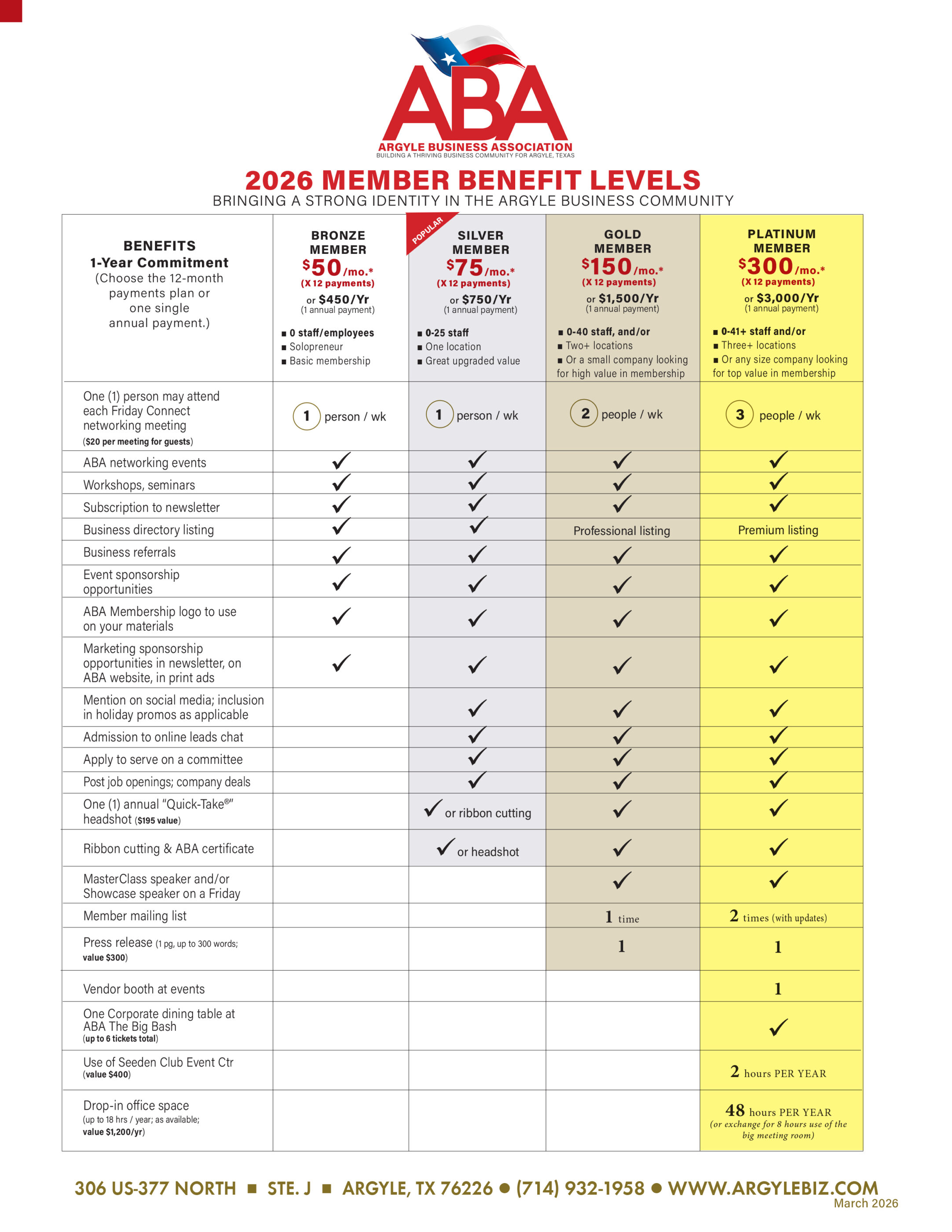 Be the face of Argyle’s thriving business community! As an ABA Ambassador, you’ll welcome new businesses, attend ribbon cuttings, and represent the ABA at networking events. If you love connecting with people and supporting local businesses, this is the perfect group for you.